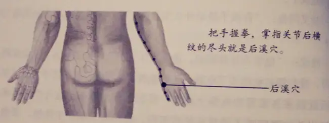 操作方法:用大拇指和食指同时按摩后溪穴,每次5分钟。常年坚持。或者让双手的后溪穴抵在桌沿或键盘上来回滚动,或揉一揉,每次刺激3--5分钟,每小时刺激一次。