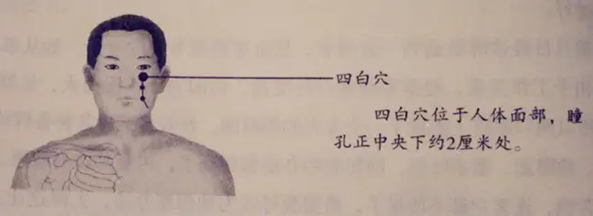 四白穴位于人体面部,瞳孔正中央下约2厘米处。
