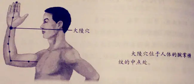 操作方法:用拇指按住用力按压大陵穴,以有酸胀感觉为佳,每次按摩时间不少于3分钟,不拘时做。