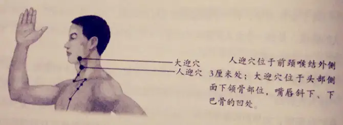 操作方法:一边吐气一边轻柔按压人迎穴和大迎穴,每次大约按压6秒钟。人迎如此按压10次,大迎重复30次,或用手顺着脖颈轻轻往下抚摸,长期坚持。