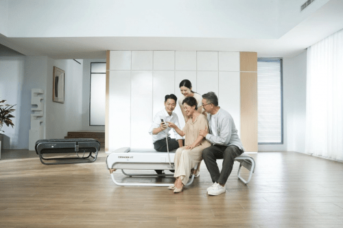 并且,为了方便家庭使用,喜来健多功能温热理疗床CGM-V5还采用了推拉式的设计,可有效利用空间,节省占地面积。将辅助底垫闭合,理疗床变成沙发后,还具有温热功能,丰富了用户的使用体验。