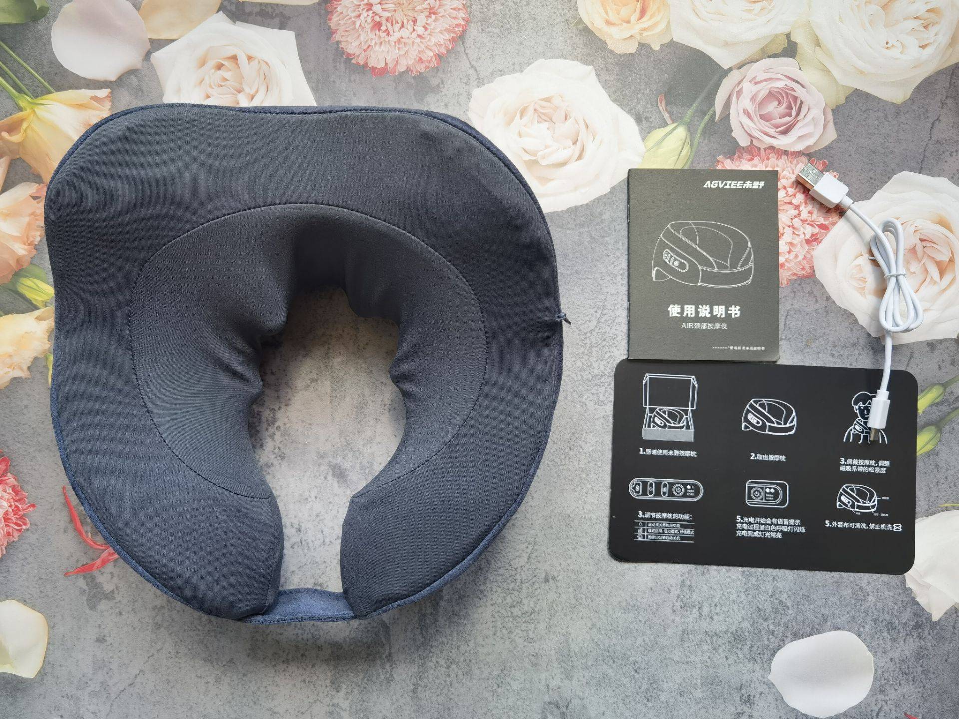 未野AGVIEE颈椎按摩器Air*1、Type C充电线*1、说明书和快速手册各1。
