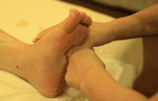 端坐于椅子上,先将右脚架在左腿上,以右手握着脚趾,再用左手掌摩擦右脚心的涌泉穴,直至脚心发热。再将左脚架在右腿上,以手掌摩擦右脚心的涌泉穴,也是摩擦到脚心发热为止。