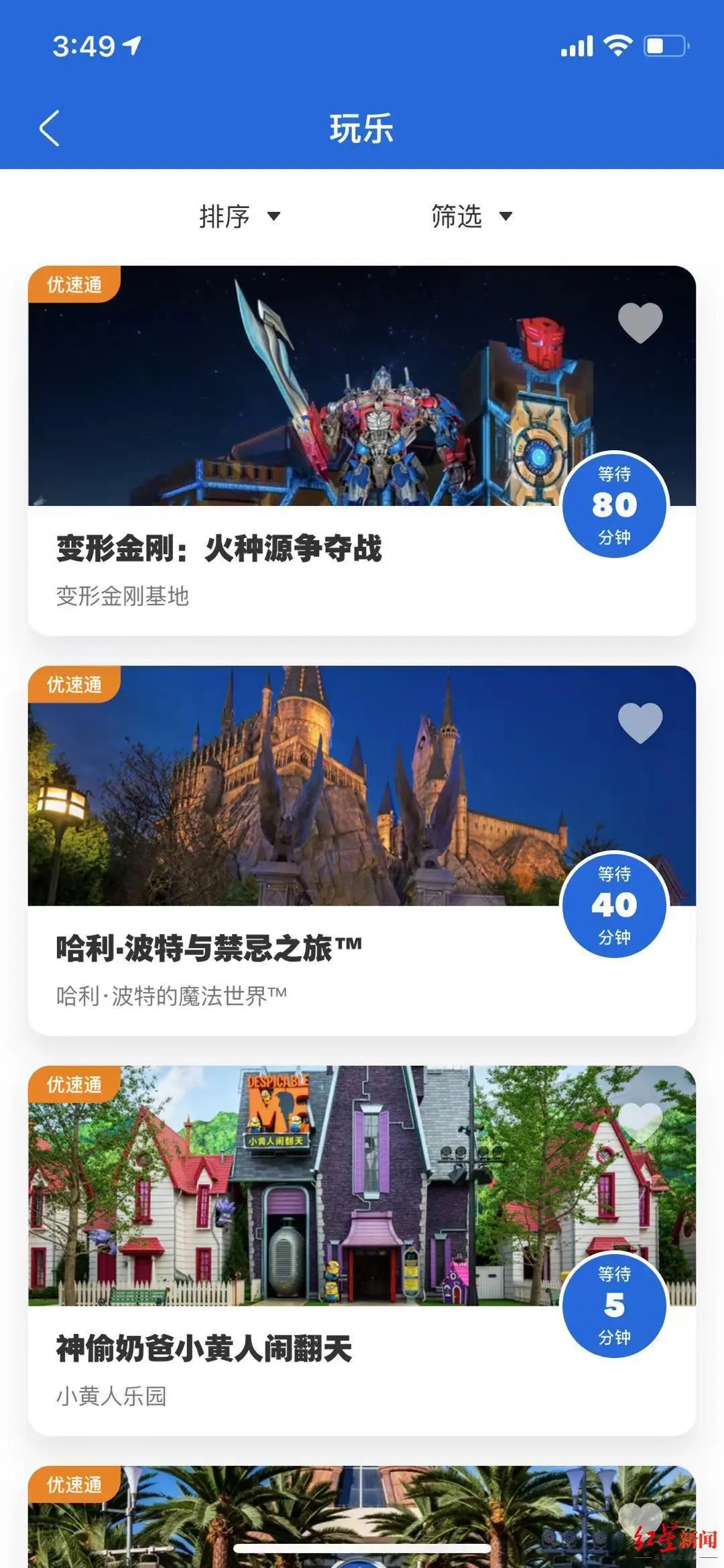 “其实排队的情况,每段时期都在变化。可以在北京环球度假区APP上看到预计排队时间,但有时不太准。”陈岚对红星资本局说,“当天上午开园几小时内,哈利波特园区的人是最多的,APP显示‘哈利波特与禁忌之旅’项目的预计排队时间为90分钟;变形金刚园区里的‘霸天虎过山车’预计排队时长60分钟;功夫熊猫和小黄人无需排队。”