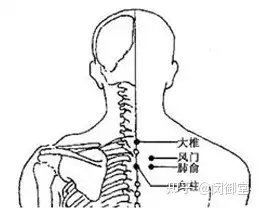 施灸穴位:大椎、身柱、 肾俞、足三里。(穴位的位置参考前图)