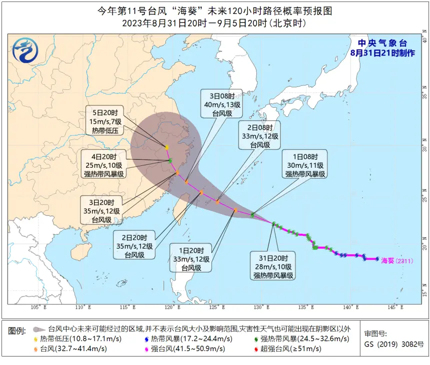 预计,“海葵”将以每小时15—20公里的速度向偏西方向移动,逐渐向华东沿海靠近,强度逐渐增强 。