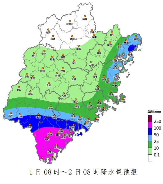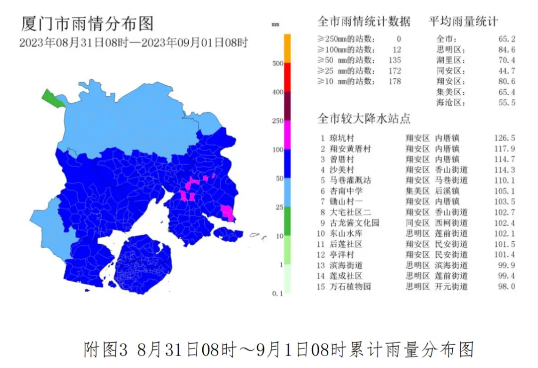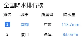 根据截至今日08时的累计24小时降水资料统计,厦门的降水量位列全国第2 。