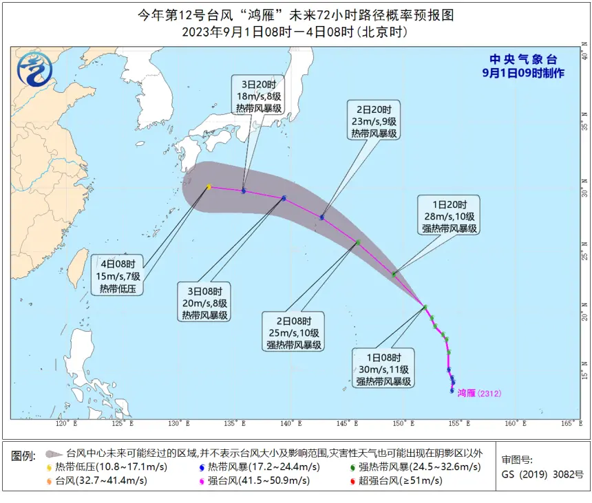 “海葵”向华东沿海靠近“鸿雁”向西北方向快速移动