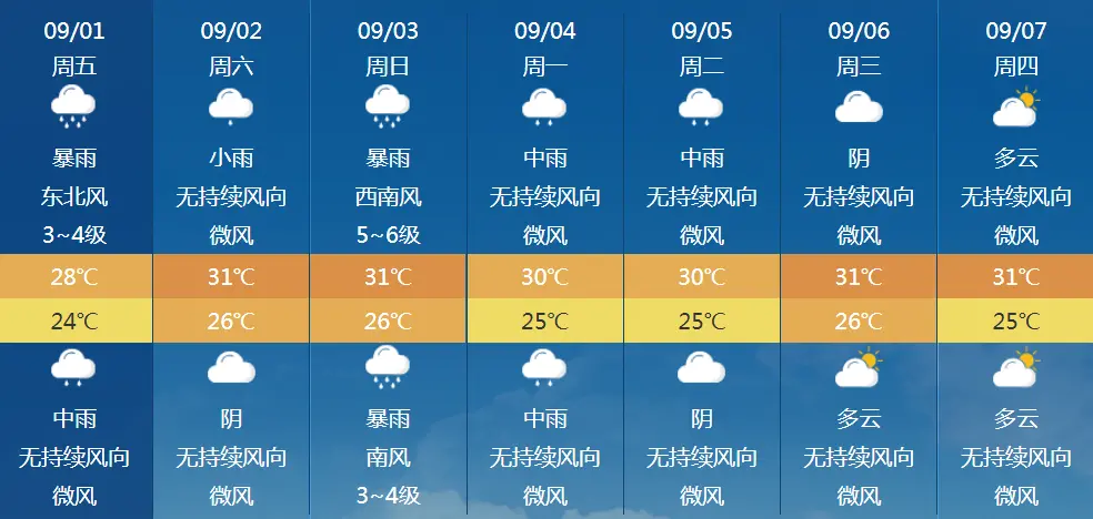 1日白天到夜间: 大雨到暴雨,雨量可达30—50毫米,局部80毫米