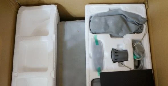 开箱,产品四周都用厚实的泡沫进行包裹,配件一一摆放在泡沫凹槽里,特别喜欢印有品牌LOGO的黑色信封,很有质感,里面装着说明书和温馨提示,足浴桶有布袋保护,作为一款高端产品,这样的包装方式还是合格的。