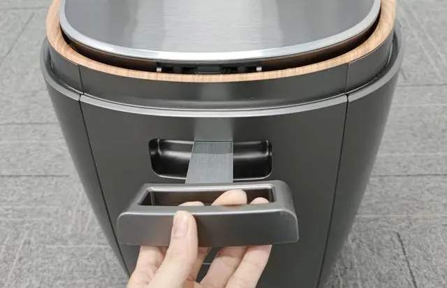 HITHS2采用隐藏式排水设计,跟烘干舱是同样的道理,按下打开排水舱,扣上关闭。排水软管外有硬管道,排水帽控制出水。