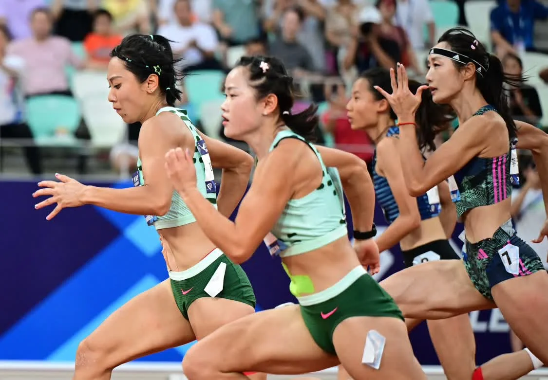 9月2日,中国选手葛曼棋(左一)在垫场赛女子100米比赛中。最终,她以11秒33的成绩获得冠军。新华社记者 魏培全 摄