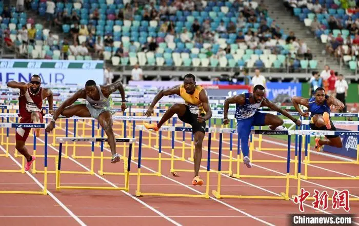牙买加选手帕吉门特(左一)以12秒96夺得男子110米栏冠军。中新网记者王东明摄