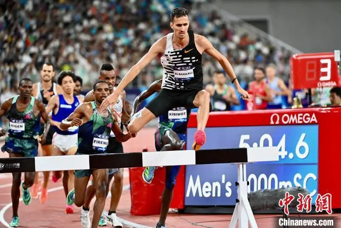 摩洛哥名将埃尔巴卡里(前)以8分10秒31获得男子3000米障碍赛冠军。中新网记者王东明摄
