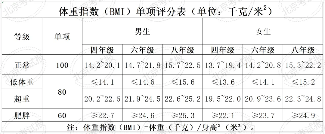 北京市国家学生体质健康测试