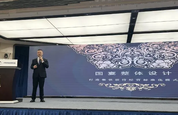 学院还特别邀请了衡山花园酒店副总经理、上海市劳动模范朱颖海为同学们上开学第一课。朱颖海以《国宴整体设计——打造餐饮接待经营标准化模式》为题,依次向同学们讲述了铺台设计、食材遴选、菜单设计等概念,生动地为新生展示了国宴文化的博大精深,为同学们初步了解和认知高端酒店餐饮行业打下基础。