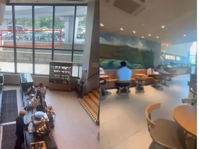 综上所述,对于社交平台X上网友发布的照片,虽然难以通过技术手段查实其具体的拍摄时间,但通过对拍摄地点的走访发现,上述拍摄地点在普通工作日内,存在人流量并不均衡的潮汐现象。在常规的午休及下班时段,无论是星巴克咖啡店,还是连廊天桥、道路,都可见正常的人流往来。